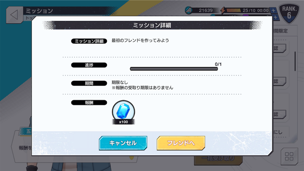 このミッションの内容は「最初のフレンドを作ってみよう」です。
